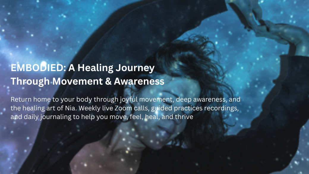 EMBODIED is a 6-week journey that blends the joyful movement practice of Nia with simple awareness tools to reconnect you with your body's wisdom so you can experience more vitality and joy. Whether you want to release stress, improve strength and flexibility, or simply feel more alive, this program gives you a safe, supportive space to explore movement at your own pace.
